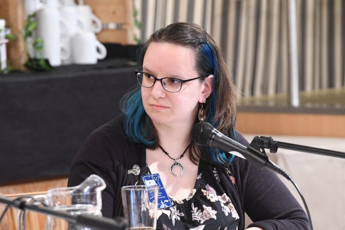 Jag refuserar ett poesimanus under tiden som panelen pågår. Mest för den goda sakens skull. Senare skall Nahal – som gör ett inhopp och hjälper till på Vendels förlag några månader – kommentera att det är mycket på poesisidan på sistone. Men det är inte på sistone, inte nu. Det är så det är. Vi diskuterar värdet av att låta bli att ge ett personliga svar när man så ofta tänker att, ja, fina människa, fortsätt skriv om det gör dig lycklig, men skriv för byrålådan, och Nahal säger att hon under två års läsning för Strange Horizons aldrig valt att lägga till ett personligt svar till standardrefuseringen. Är det bra nog att ha en åsikt om är det bra nog att skicka vidare till nästa person. En rimlig hållning.